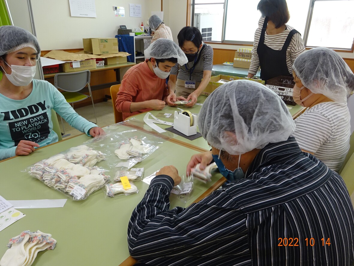 2022年10月17日(月) きずなニュース 育児工房様のお仕事をさせていただきます 育児工房(株式会社オオサカヤ)様のお仕事を、させていただくことになりました。 赤ちゃん用品の袋詰め、シール貼り等です。机の消毒、そして身なりを整え、手指を念入りに洗い消毒してからお仕事を始めます。 とにかく可愛い赤ちゃん用品、お仕事しながら癒されて幸せな気分になります。