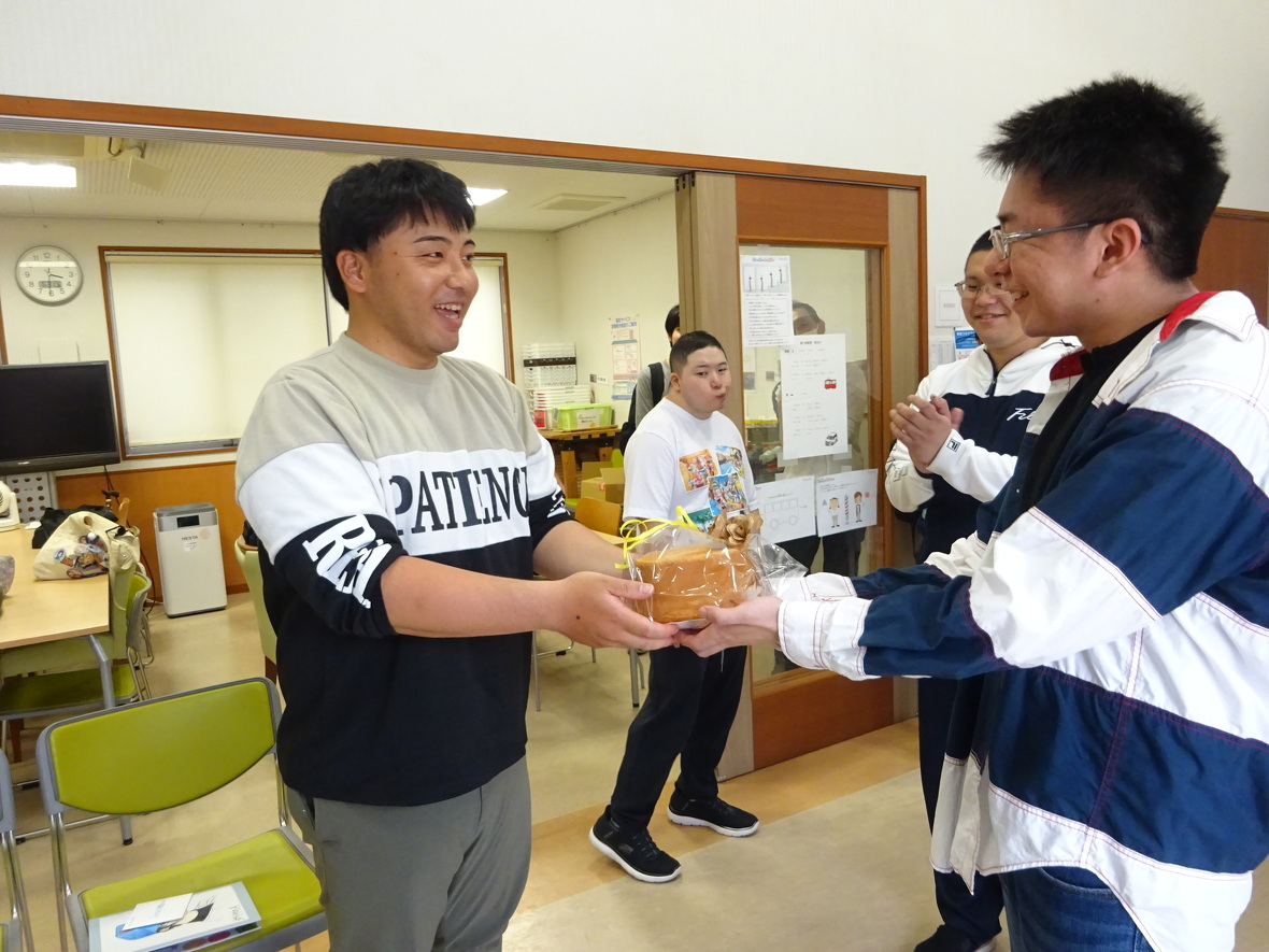 同じ半田市内にあるツカサ工業様にめでたく一般就労が決まり、きずなを飛び立っていくのは寂しい気持ちがしますが、彼のこれからの人生が豊かなものになると思うと、とても嬉しくもあります。いきなりきずなから、企業様に移行するのは少しハードルが高いので、少しずつ勤務日数を増やしていただき、お陰様でスムーズに移行することができました。ツカサ工業様のご配慮には感謝の気持ちでいっぱいです。