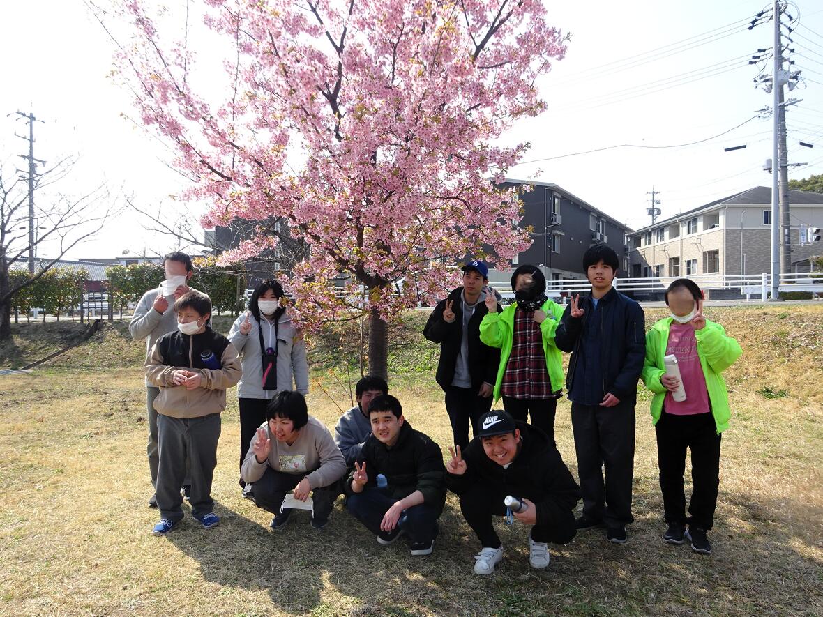 2025年04月04日(金) きずなニュース お花見に出かけました 3月21日、近くの七本木公園に花見に出かけました。最近は桜の開花が早いので早めの計画を立てましたが、今年は開花が遅くまだ桜はチラホラ。それでも満開の木を見つけ、みんなで記念撮影をしました。 七本木池の周りをぐるーっとウォーキングをした後は、健康器具などで体力づくり。きずなに帰った後はみんなで花見団子を食べました。体を動かした後のお団子は美味しかったです!